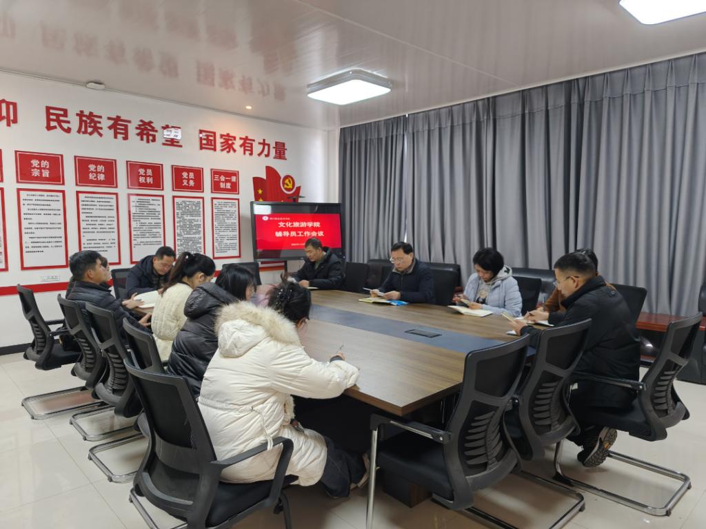 为切实做好期末各项学生管理工作,筑牢校园安全稳定防线,12月29日,文化旅游学院在五区党员活动室召开全体辅导员工作会议。学院党总支书记展贤东,副院长于慧娟、李炯,学管办主任普俊,综合办主任石永丽及24、25级全体辅导员参会。