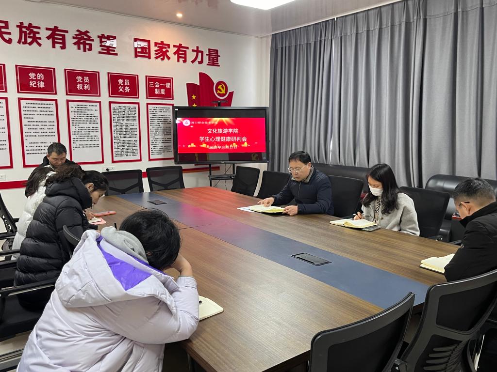 为切实筑牢学生心理健康防护墙,精准掌握不同学段学生心理发展动态,10月17日,文化旅游学院在五区党建活动室召开学生心理健康研判会。我院党总支书记展贤东、副院长于慧娟、学管办主任普俊以及全体辅导员参加此次会议。会议由党总支书记展贤东主持。