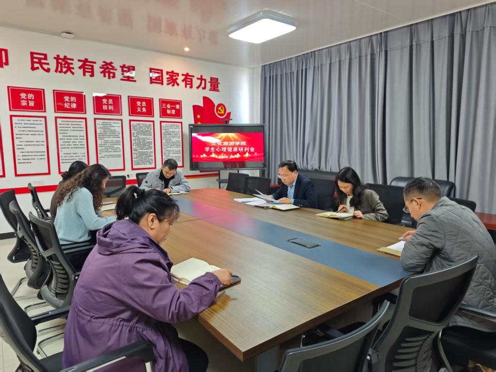为扎实推进我院心理健康教育实践工作,提升学生对心理健康问题的识别与干预能力,5月26日文化旅游学院在五区党建活动室召开学生心理健康研判会。我院党总支书记展贤东、院长史丽珍、副院长于慧娟、李炯、学管办主任普俊、教务办主任马淼、综合办主任石永丽参加会议。会议由展贤东主持。