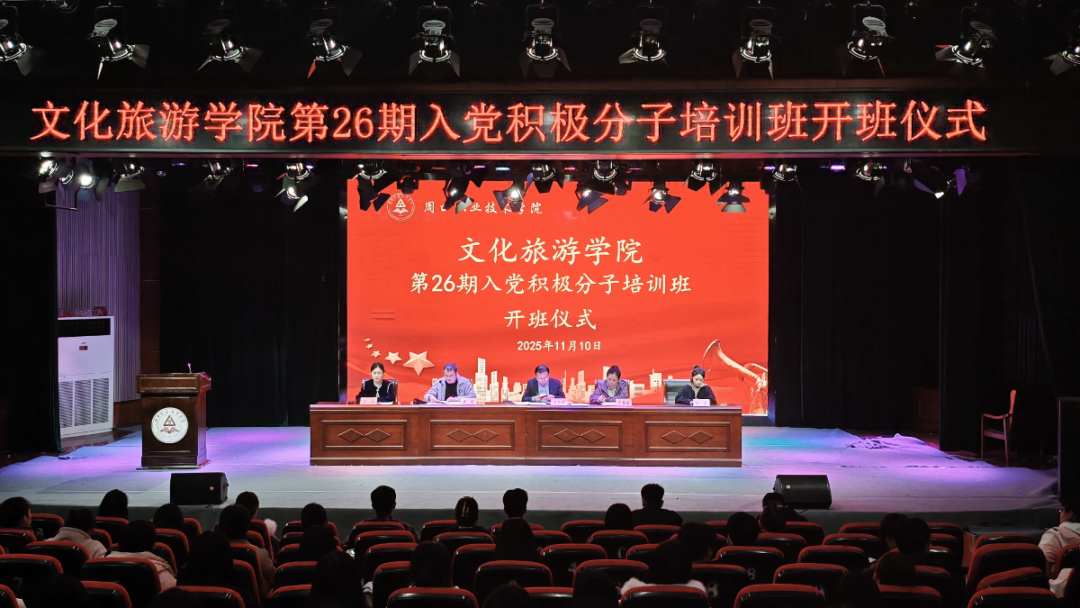为深入学习贯彻习近平新时代中国特色社会主义思想和党的二十大精神,切实加强党的基层组织建设,筑牢青年学生理想信念根基,提升党员发展质量,2025年11月10日,文化旅游学院在开元校区砺德厅举行第26期入党积极分子培训开班仪式。学院党总支书记展贤东、学生党支部书记于慧娟、学生支部委员会成员、全体入党积极分子、优秀学生代表参加开班仪式,学生党支部组织委员普俊主持。